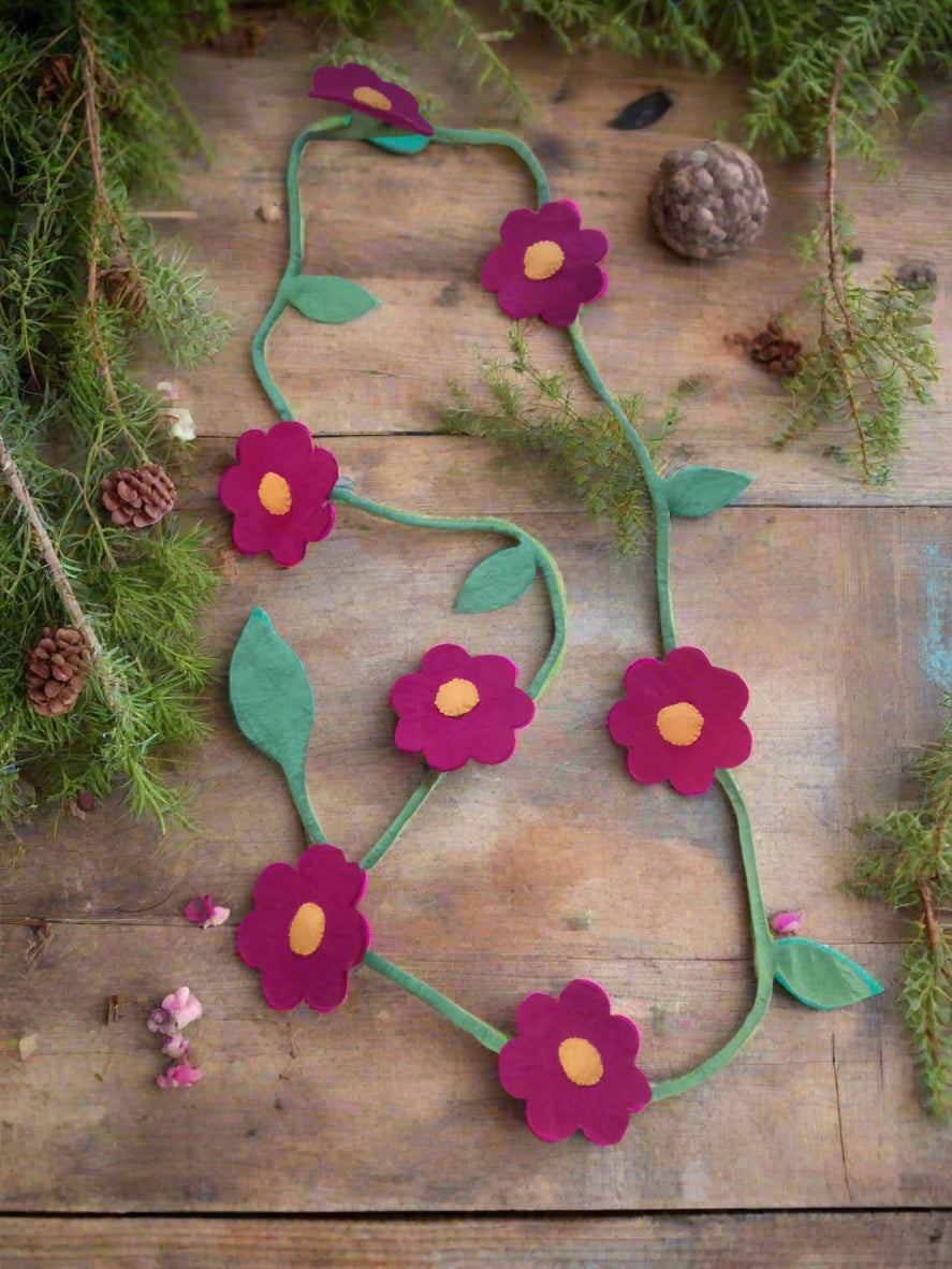 Bring a splash of charm and whimsy to any room with the Daisy Garland-Ruby. Each delicate daisy is lovingly handmade from soft woolen felt, creating a playful and colorful decoration that brightens your space. Perfect for adding a cheerful touch to parties, nurseries, or cozy corners, this garland effortlessly blends handcrafted beauty with vibrant ruby hues. Let this delightful string of daisies add a joyful bounce to your day!
