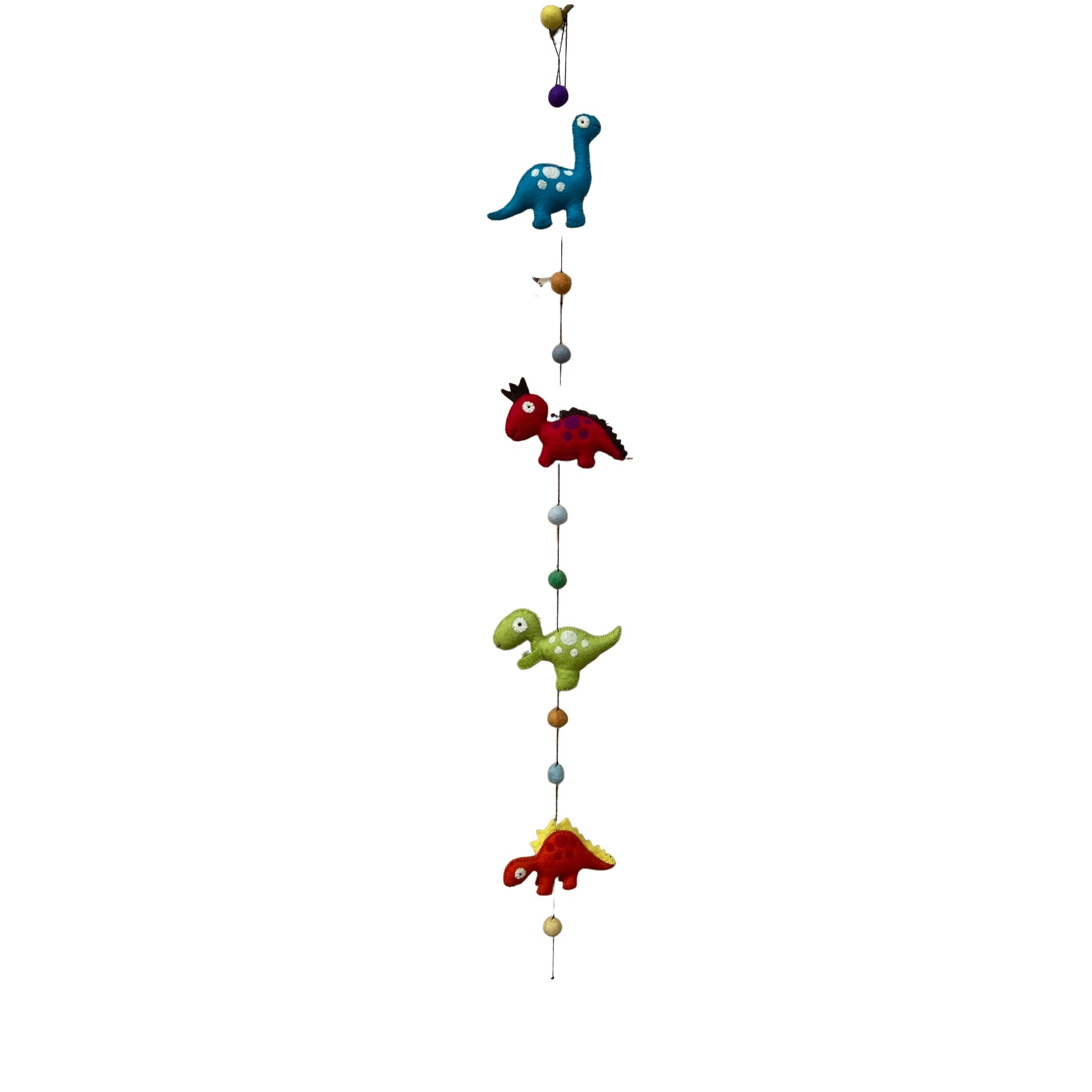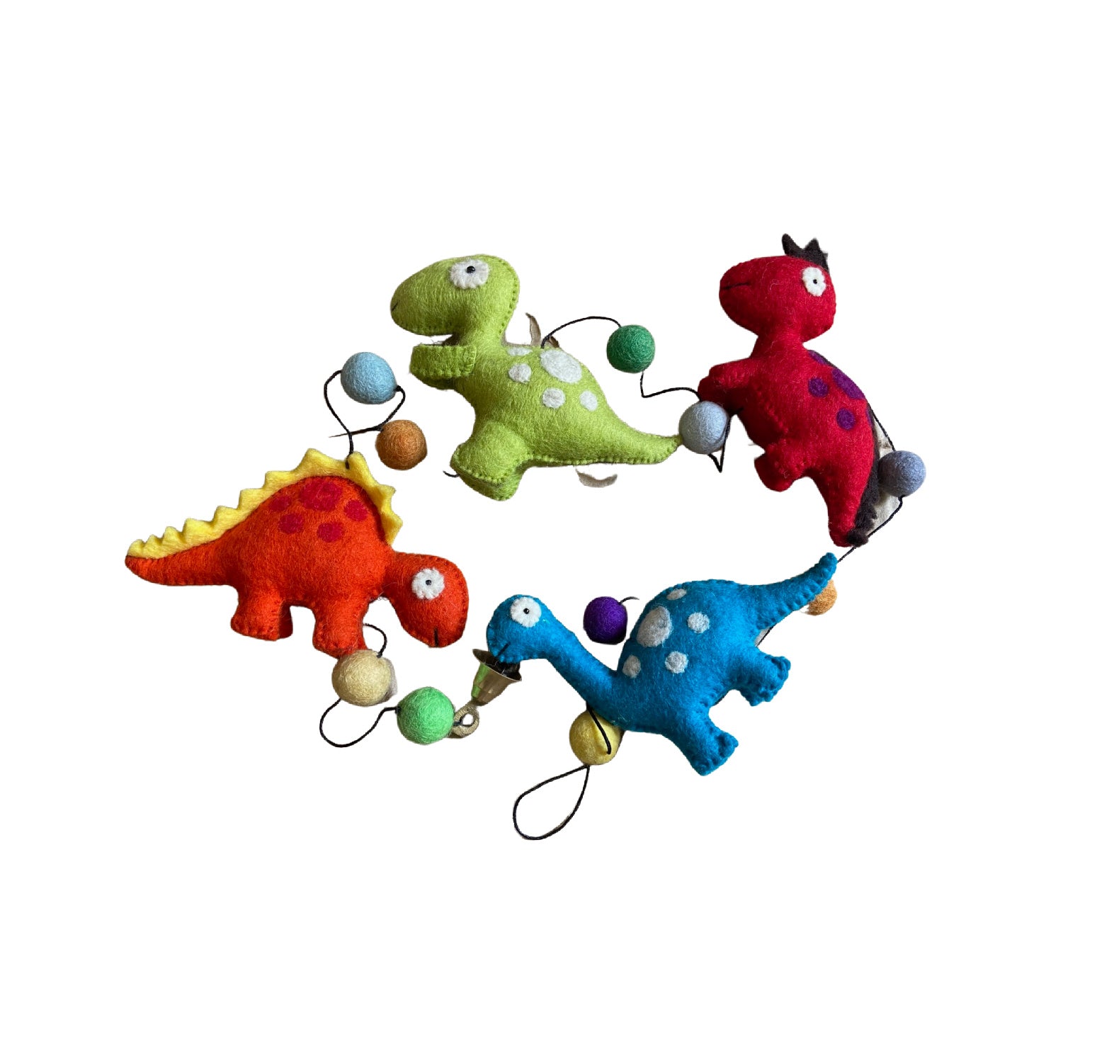 This hanging comes with 4 multi coloured dinosaurs and a bell on the end.