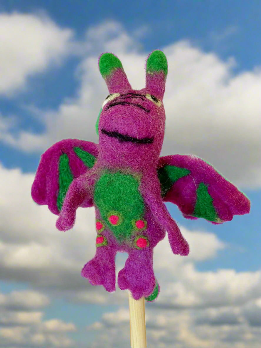 Bring storytelling to life with this playful purple dragon finger puppet. Hand felted for a soft, textured feel, it sparks imagination and adventurous play for kids and adults alike. Perfect for creative fun, puppet shows, or as a charming gift for fantasy lovers.