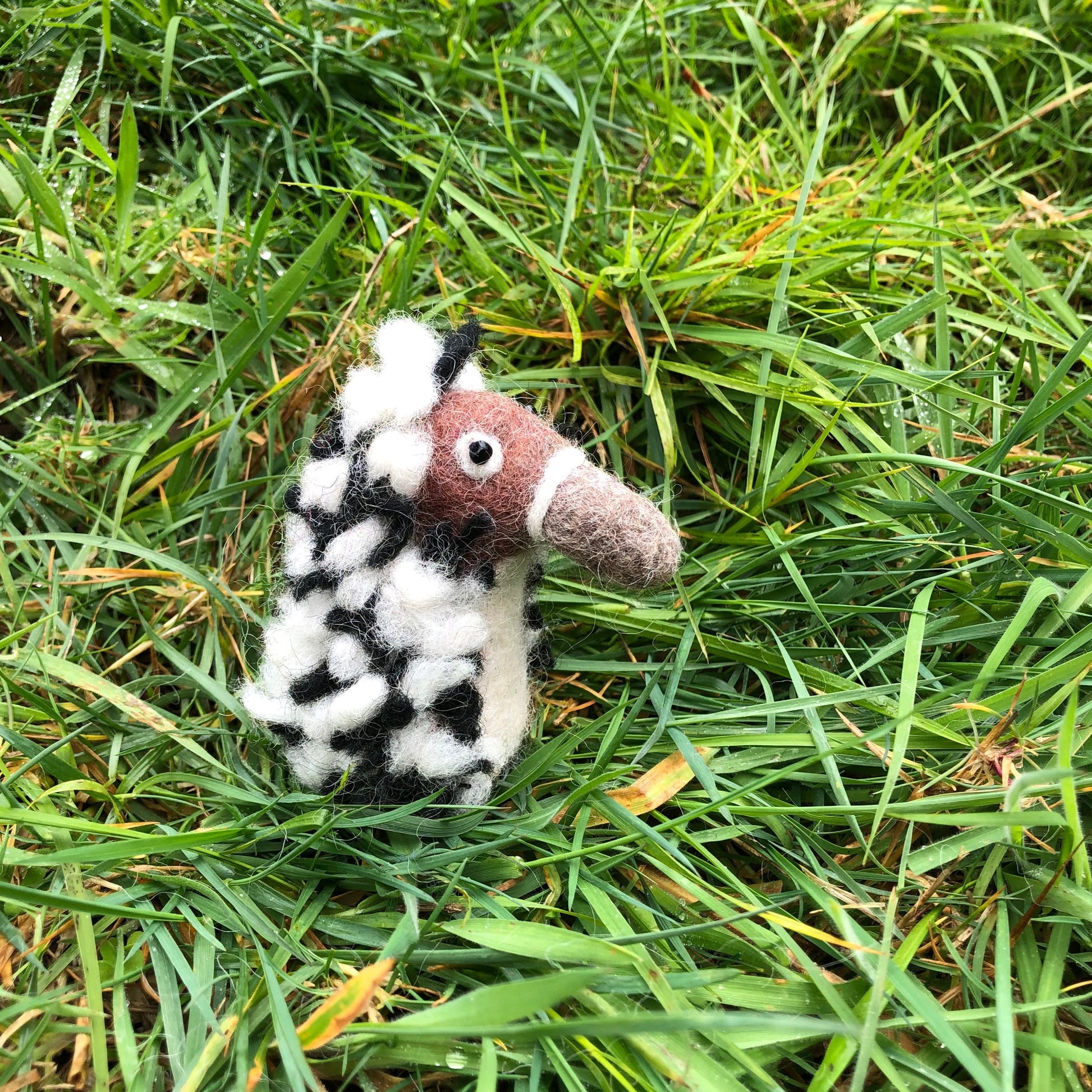 This adorable echidna finger puppet is the perfect item to open up a world of story telling. It has been ethically hand felted from 100% wool and os free from azo dyes.