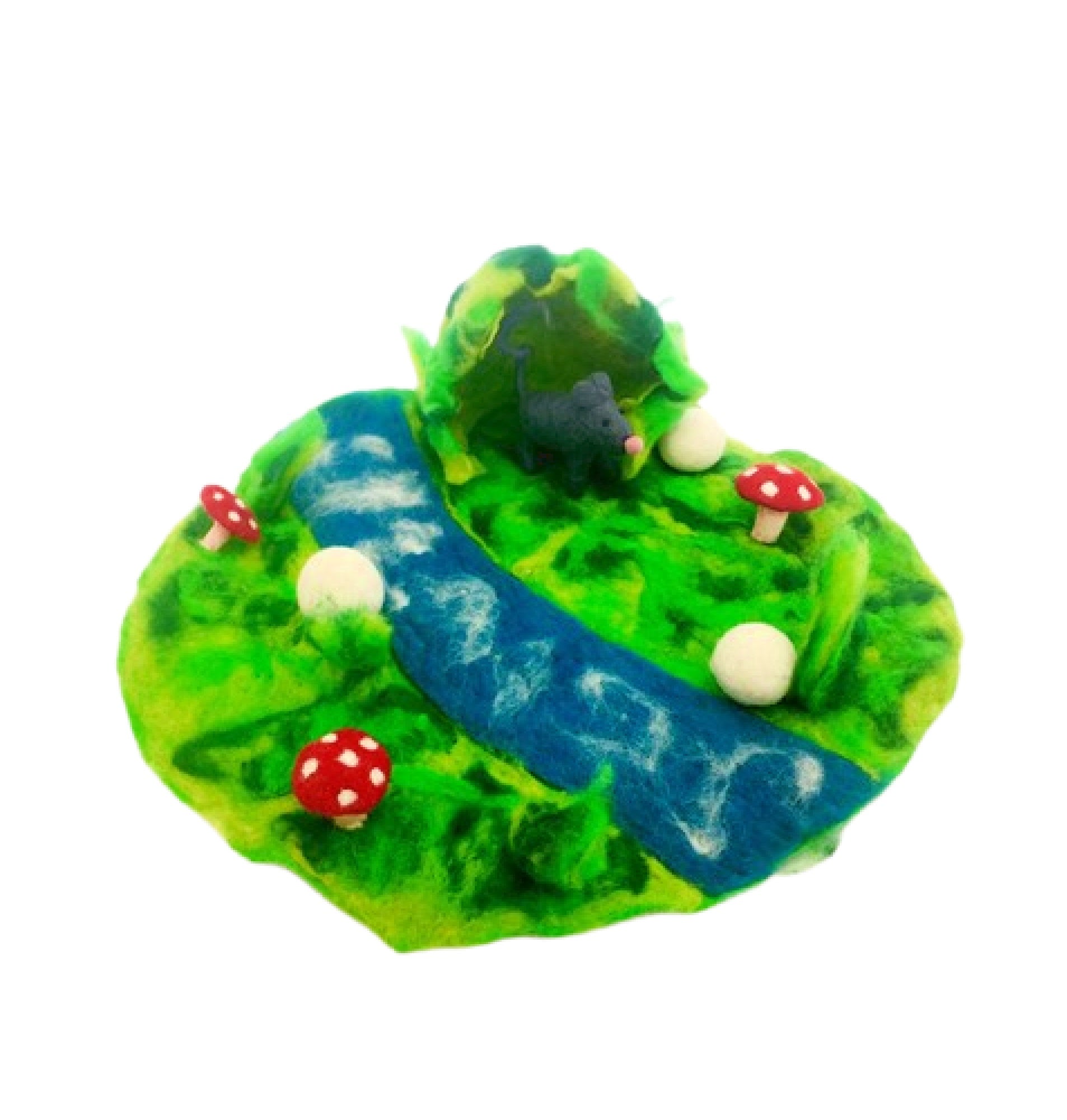 Our magical playscape, will attract all the faeries! It has a magical cave, crystal blue stream and magical toadstools.