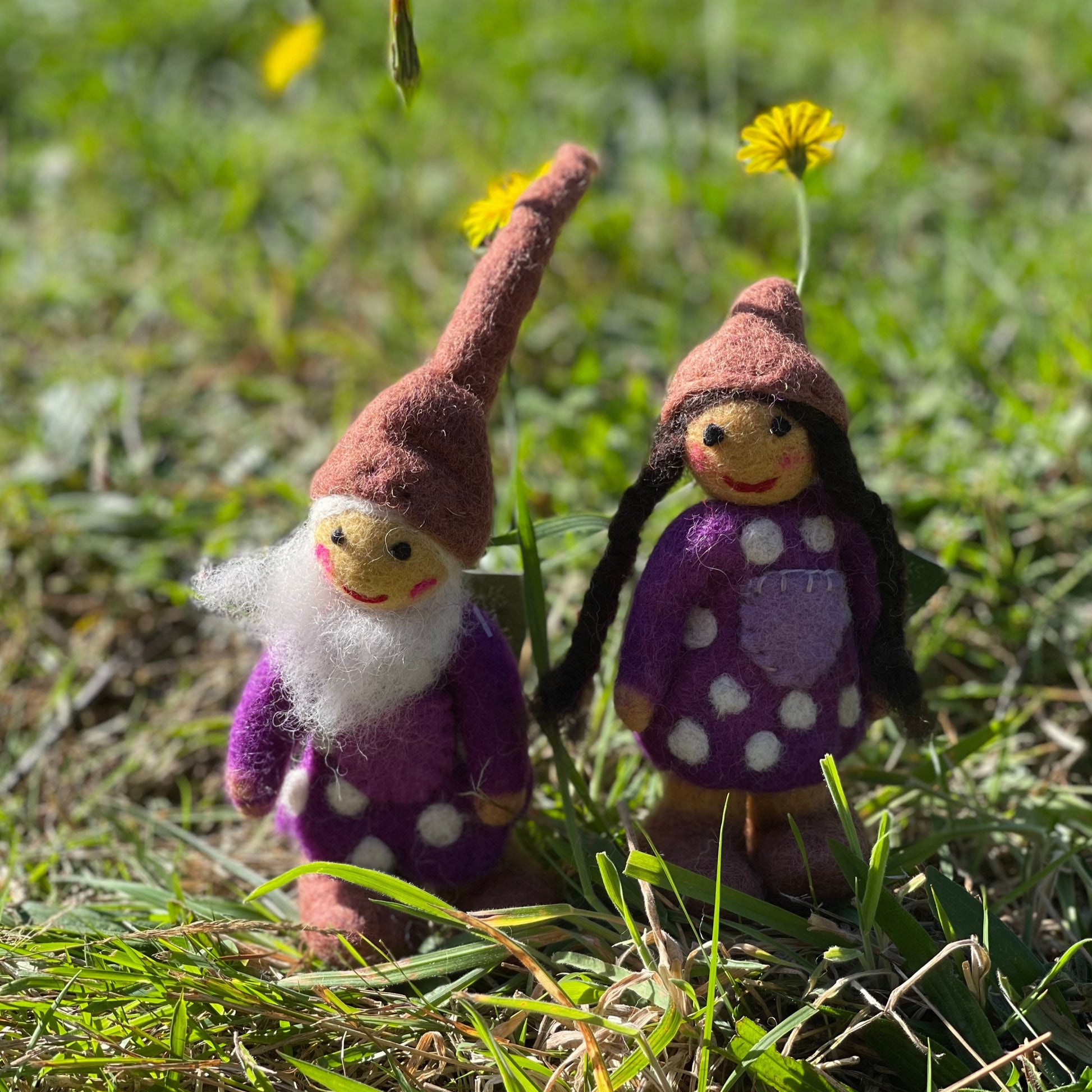 This adorable pair are the perfect addition to our gnome theme. they have moveable arms and legs and sometimes can stand up on their own. They have a magical gnome hat on and a cute little gnome outfit with a pocket on the front. They are aprox 15cm high. These come as a pair.
