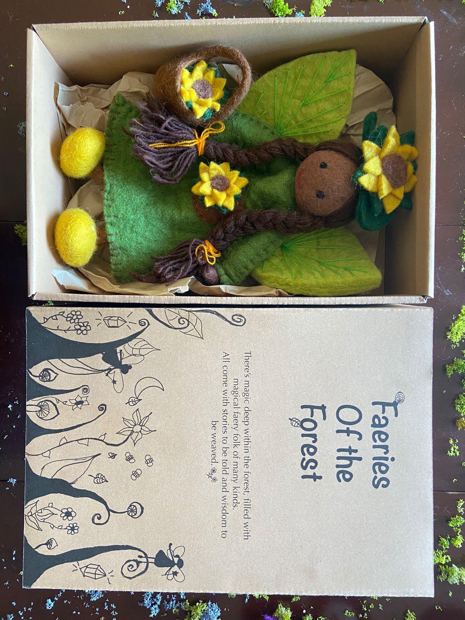 This magical faery is called Goldie, she is the faery of the sun, spreading her golden light far and wide, she comes with a magical basket filled with magical sunflowers that hold sacred magical of the sun.