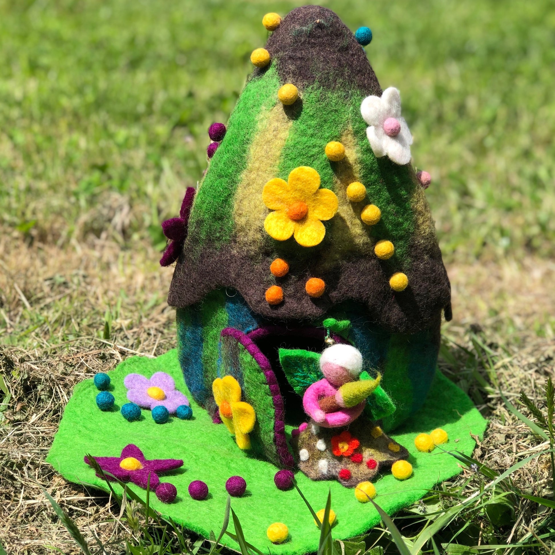 This magical faery home comes attached to its own mat, has a door that opens and closes, a window and a sweet little bell above the door. Please not the faery is not included but can be purchased on this website.