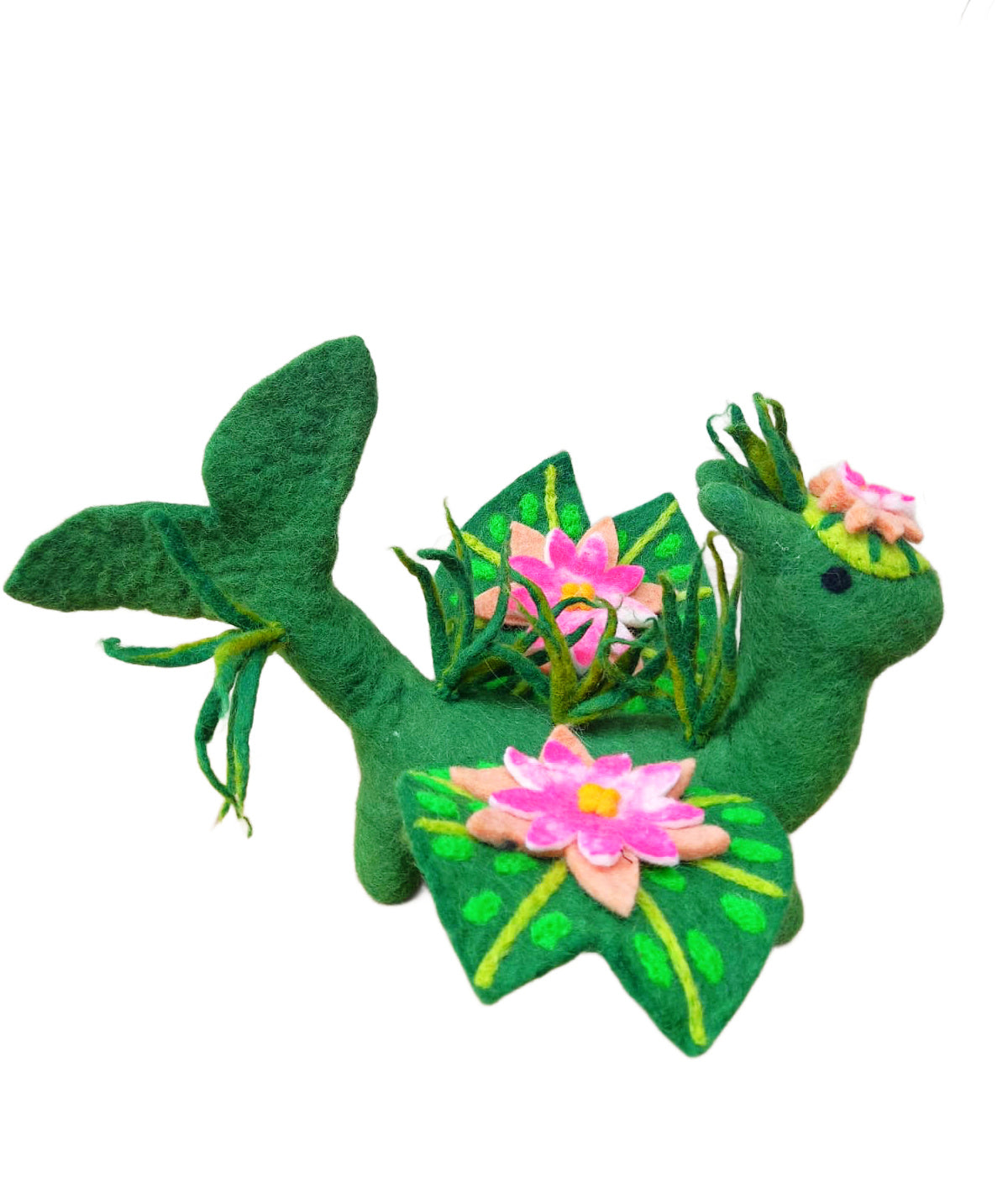 Meet the Lilly Dragon a charming woolen felt creation decorated with delicate lilies and wild grasses. This playful little dragon carries the magical lore of the sacred lily, bringing a touch of whimsy and enchantment to your space. Perfect as a unique gift or a delightful companion, it sparks imagination and celebrates nature’s gentle magik.