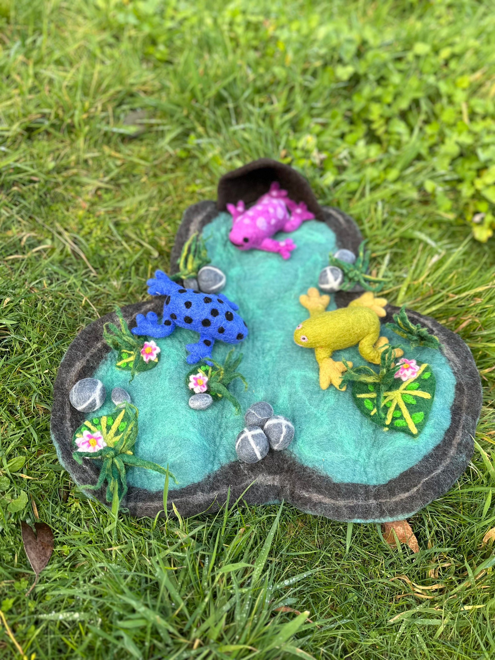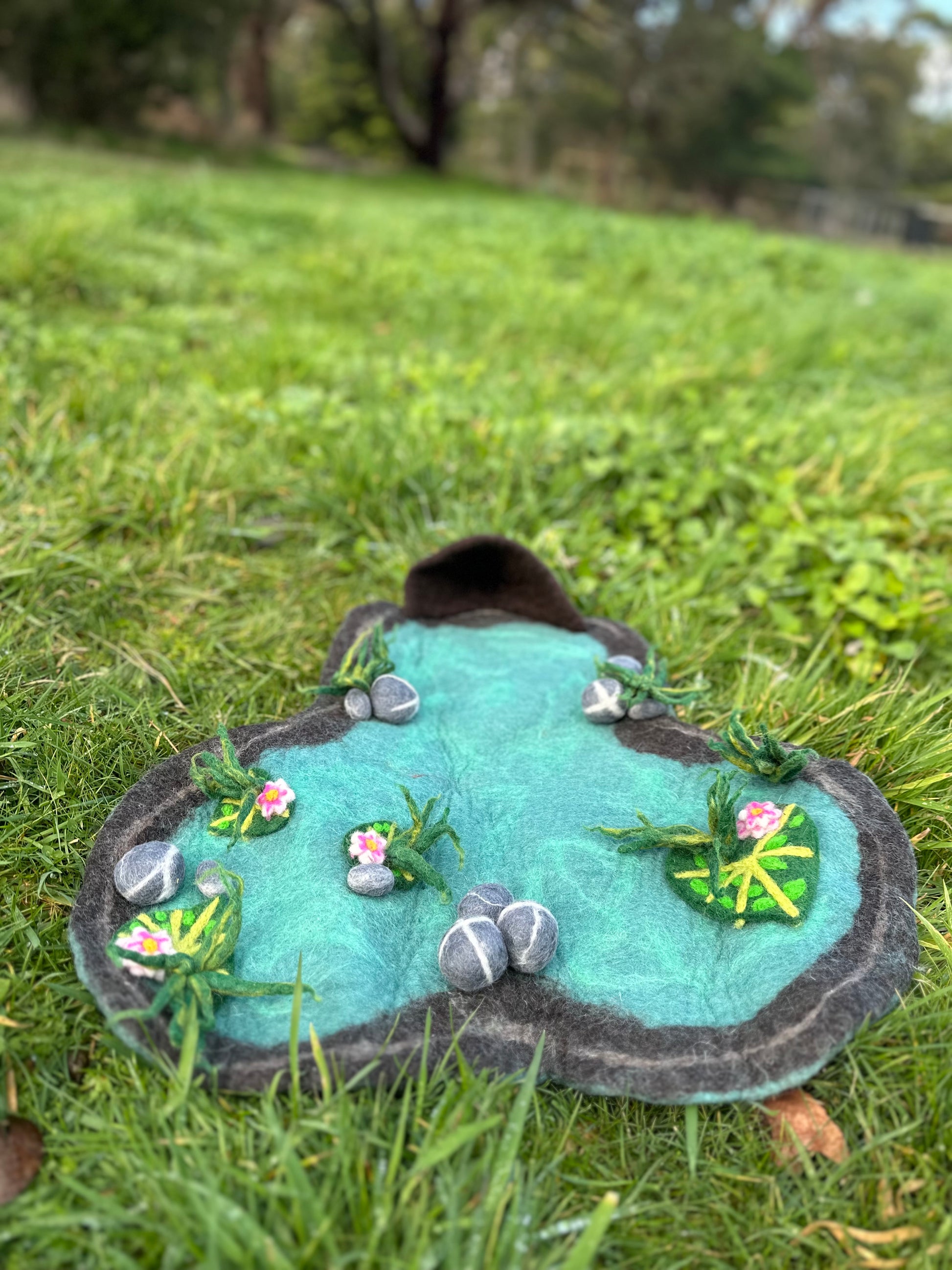 Transform any playtime into a magical journey with the Lilly Pond Playscape. Featuring hand-felted details of lotus flowers, a cave and lilies, this open-ended playset will spark imaginative play and invite children to explore the wonders of a wetland habitat. Add a touch of nature to your child's playtime today!