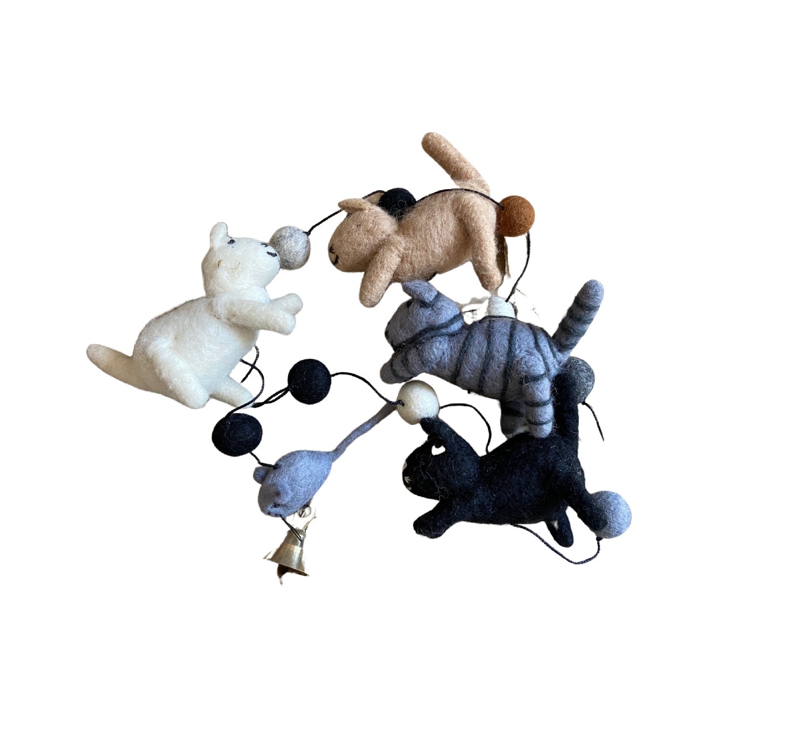 This adorable hanging comes with 4 different Color’s pussy cats, a cheeky mouse and a bell on the end!