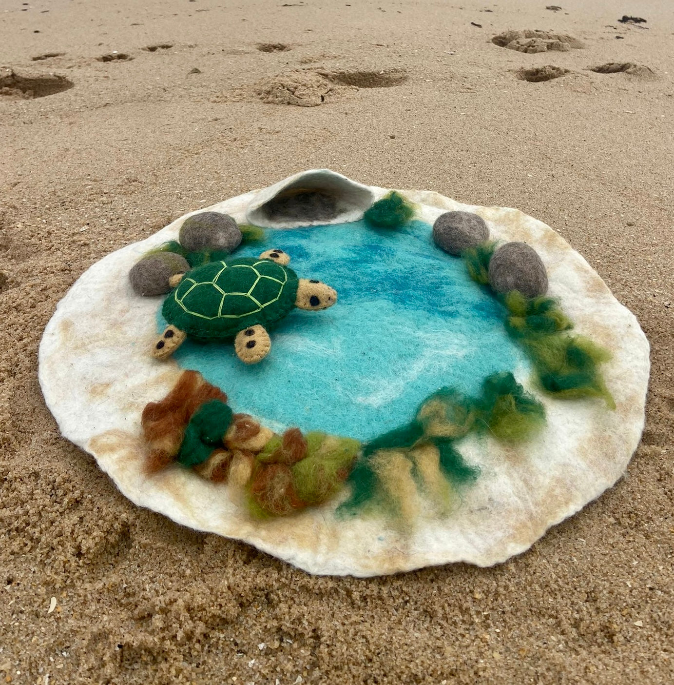 This play scape mat will add a beautiful marine environment to any playroom, it comes with a cave, rocks and fluffy seaweed (turtle in second pic is not included)