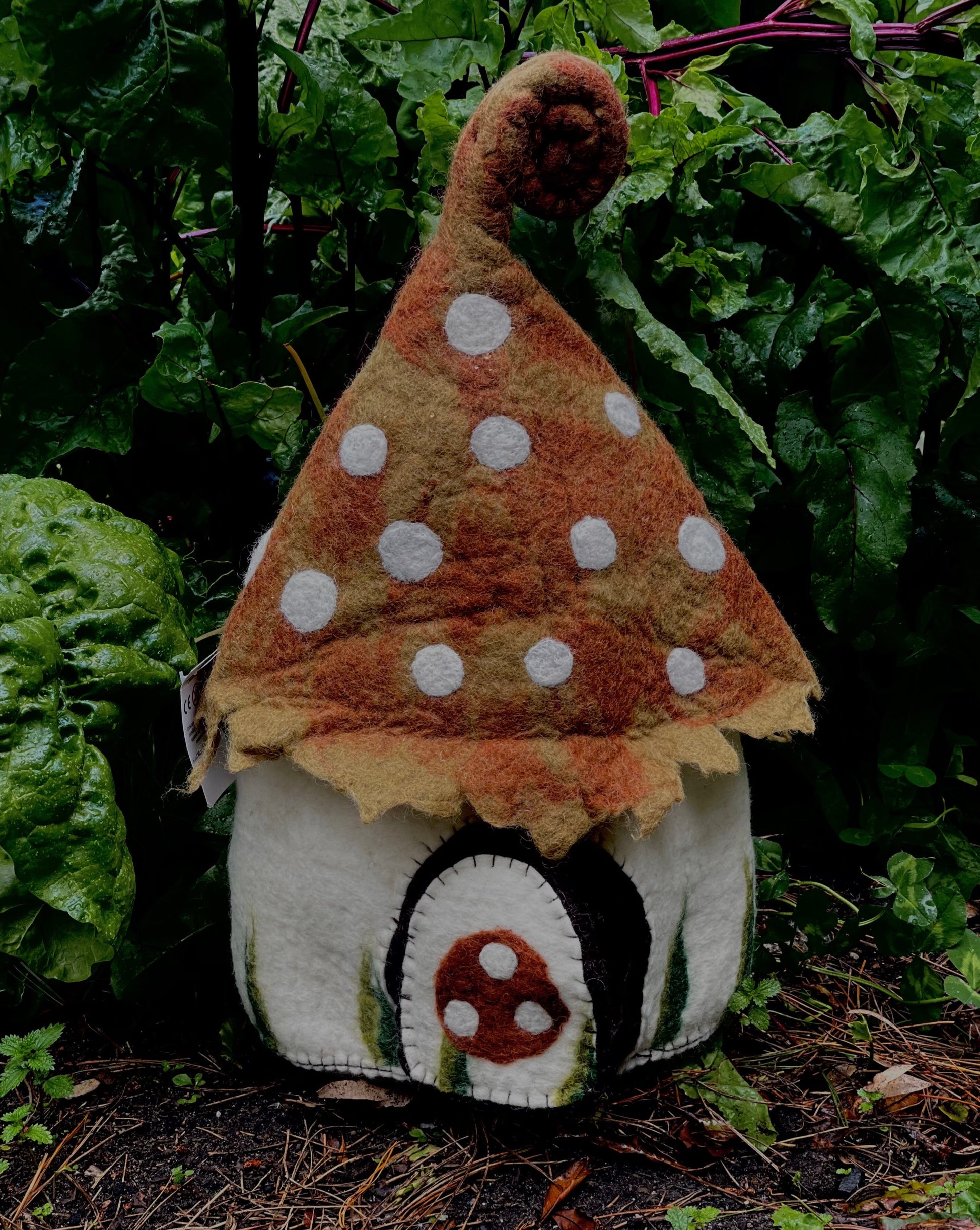 This magical home is the perfect home for any faery,elf or gnome. It has a gorgeous toadstool roof and a sweet toadstool door that opens and closes. It is aprox 60cm high and 40cm wide.