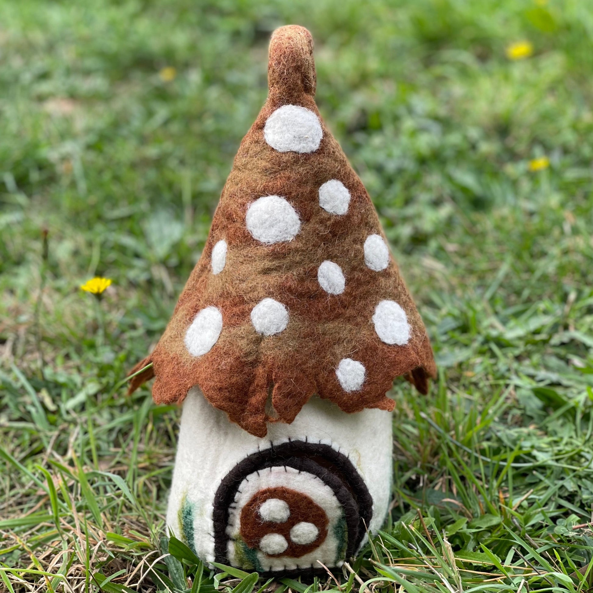 This magical home is the perfect place for any gnome, elf or faery, it has a sweet toadstool roof and a gorgeous toadstool door that opens and closes. It is aprox 40cm tall and 25cm wide.