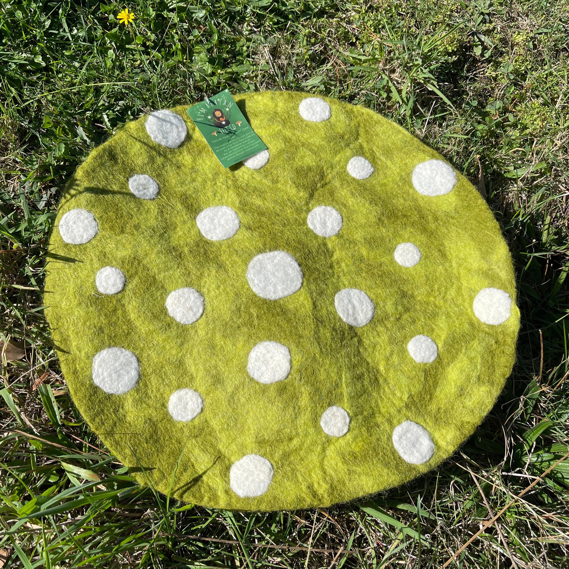 This toadstool mat is aprox 50cm diameter and is the perfect addition to any magical play scene.